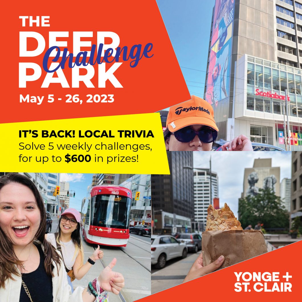 The Deer Park Challenge is a self-led, 3-week scavenger hunt taking place across the Yonge + St. Clair neighbourhood.