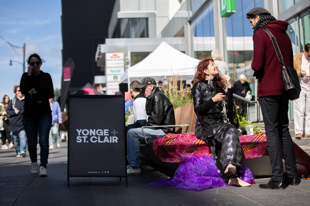 The Yonge + St. Clair Fall Art Festival was the first local, outdoor art exhibition and sidewalk showcase event, which saw local storefronts, 6 new art installations, and sidewalk performers bring new life to shared public spaces all across the intersection at Yonge + St. Clair. 40 local businesses, retailers, eateries and community causes banded together to bring a newfound sense of community to the area, reflecting the forward-thinking aspirations of this emerging neighbourhood.