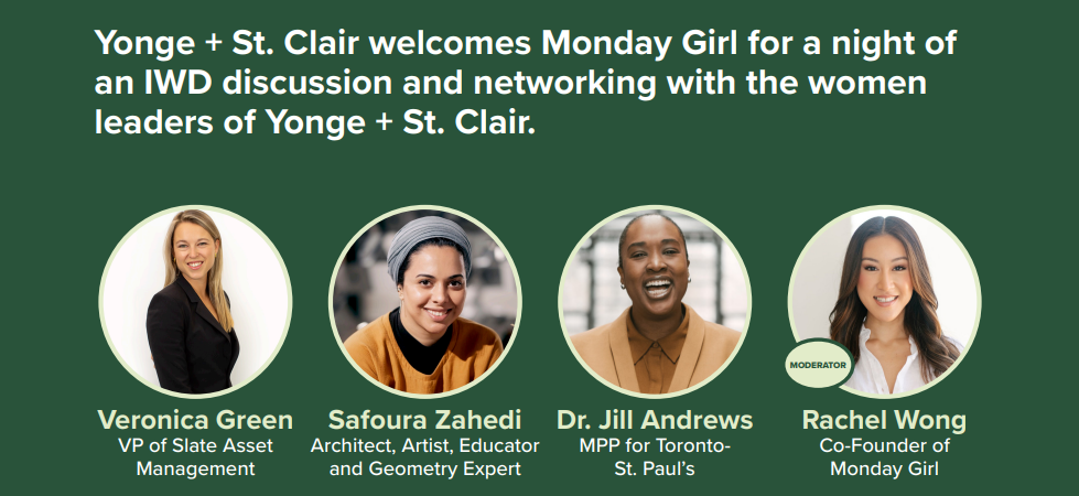Thank you for joining us at Yonge + St. Clair for the Monday Girl x Glisten Festival International Women’s Day Panel.