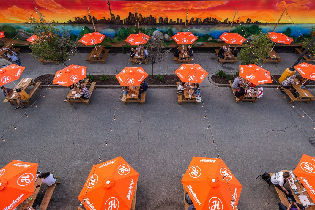 PATIO at Yonge + St. Clair is an outdoor food + drink patio where you can enjoy 10+ local restaurants plus an on-site bar. Table reservations can be made at the official PATIO website, and walk-ins are welcome with limited capacity.