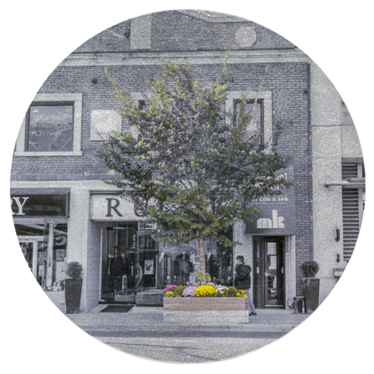 I started by exploring the neighbourhood and photographing the trees. Yonge and St. Clair has an interesting combination of old and new buildings and the trees mirror this. I found an interesting mix of mature trees (mostly honey locusts) and some new plantings in attractive wooden containers.