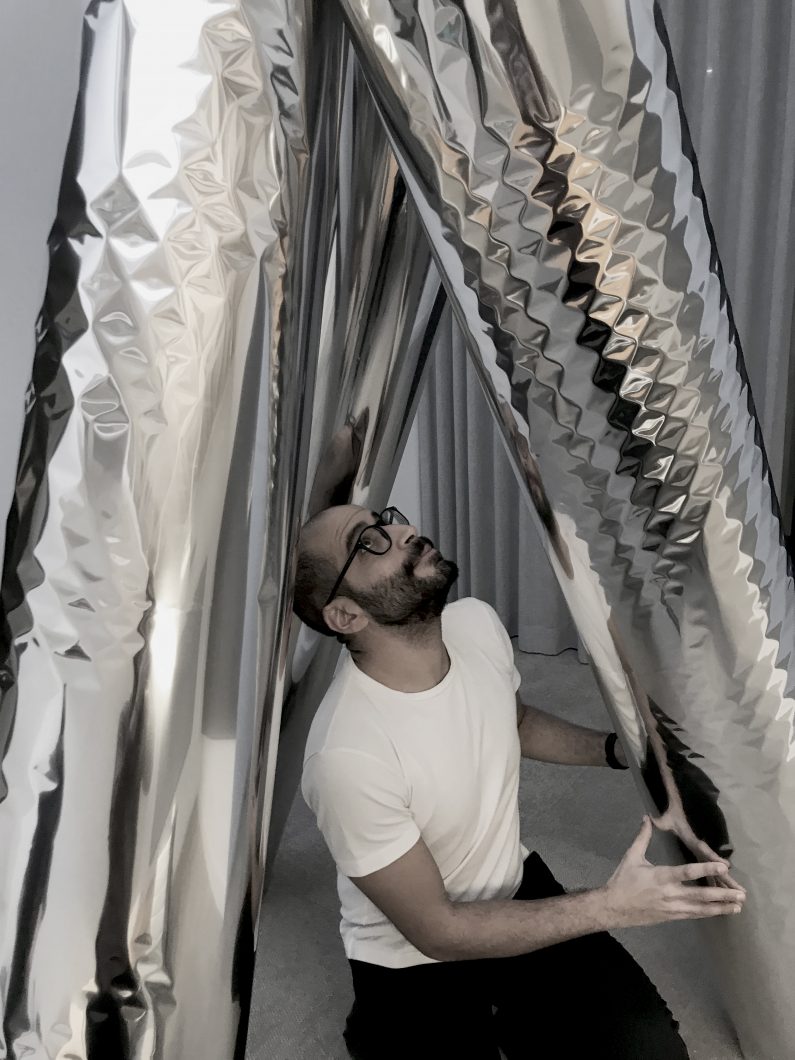 Following the concept was the realisation: figuring out how to easily build, transport, install on site. We tested several materials and structural systems by building a number of mock-ups at a park by our office. Budget and constructability constraints necessitated a creative and resourceful approach to the use of materials, and structural systems that support them. For example, we considered using emergency blankets as the reflective film. By trying it out, we discovered that we couldn’t remove the fold marks. We ended up finding reflective film at a gardening store – it’s used to reflect light back onto plants.