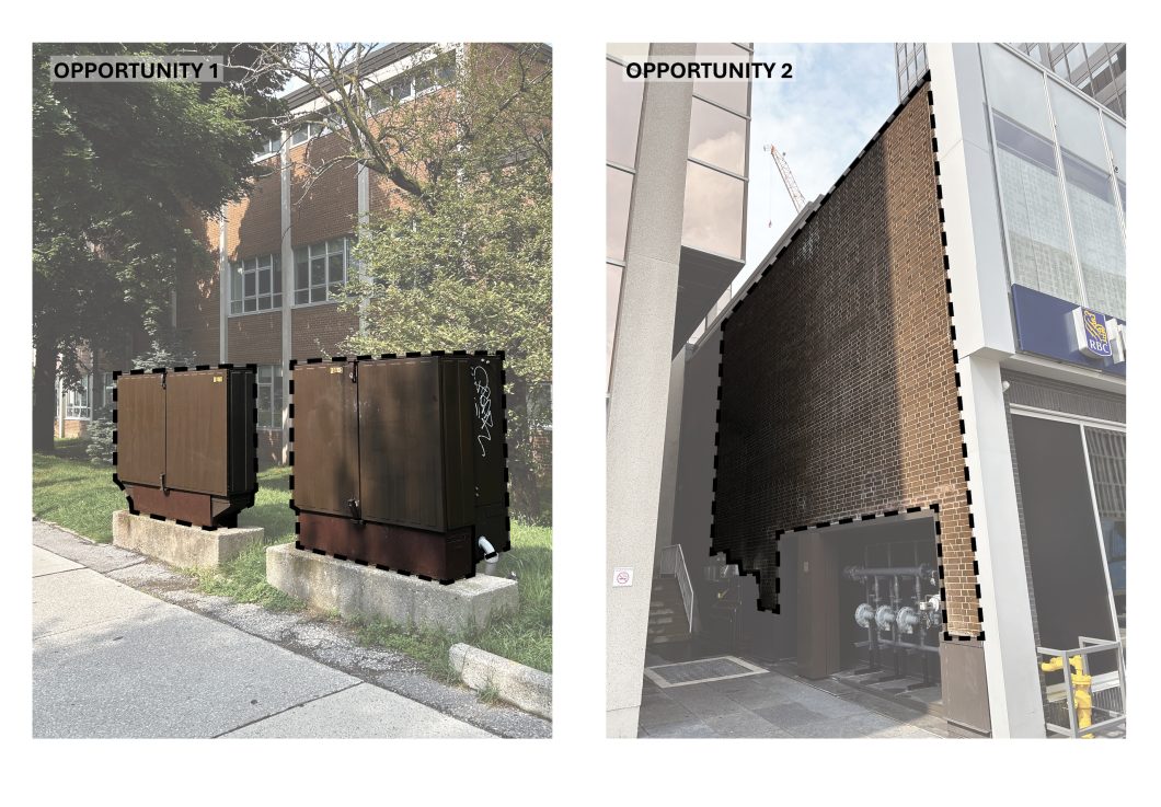 Theme: Opportunity (1) [electrical boxes] “Depict nature in reference to geographical, historical, & cultural context”; Opportunity (2) [brick wall] “Display the culture of Yonge + St. Clair in relation to the past, present, and future.” For both themes, we still expect your own creative interpretation and unique style to be at the forefront of the design.