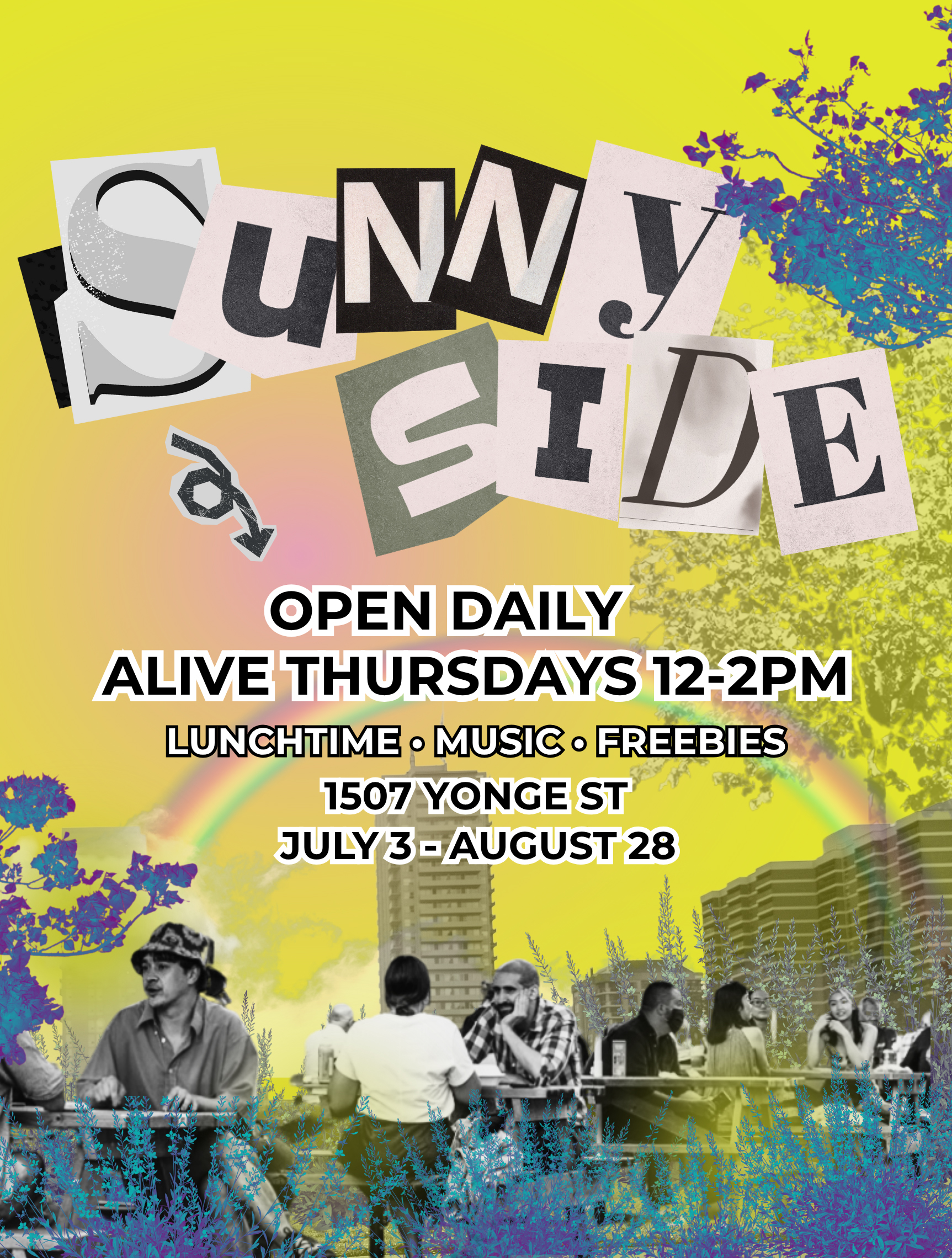 Located at π Wally Crouter Walkway (1507 Yonge Street –Β See Map) Sunny Side is a reimagined pedestrian cut-through – now transformed into a linear public seating area filled with picnic benches, dappled shade, and just enough programming to brighten your day.